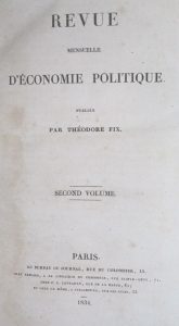 FIX (Théodore). Revue mensuelle d'économie politique. Paris, Au Bureau du Journal, Renard, Levrault, 1833-1834. 12 livraisons en 2 volumes in-8, bradel cartonnage, dos lisse orné (Reliure pastiche moderne). Coquelin & Guillaumin, t. II, p. 530....
