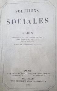 GODIN (Jean-Baptiste André). Solutions sociales. Paris, Le Chevalier, Guillaumin et Cie ; Bruxelles, Office de publicité, 1871. In-8, demi-maroquin rouge à long grain, dos lisse orné de doubles filets dorés, tranches mouchetées, couverture...