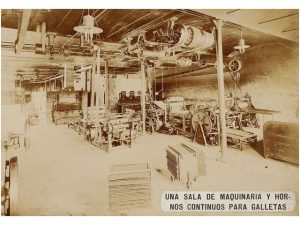 1880. CONJUNTO DE 8 INTERESANTES FOTOGRAFIAS DEL INTERIOR DE LA FABRICA DE GALLETAS VINAS. 12x17 cm. Albúminas montadas sobre cartoné.