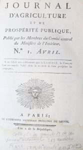 JOURNAL D'AGRICULTURE et de prospérité publique, publié par les Membres du Comité central du Ministère de l'Intérieur. Paris, De l'Imprimerie nationale exécutive du Louvre, L'an 2 de la République. Ensemble 13 fascicules en un volume in-8,...
