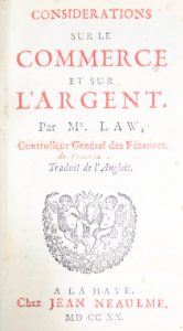 LAW (John). Considérations sur le commerce et sur l'argent. La Haye, Jean Neaulme, 1720. In-12, vélin rigide, dos à nerfs, titre à l'encre, tranches mouchetées de rouge (Reliure de l'époque). Goldsmiths, n°5820. - Spengler, pp. 57-59....