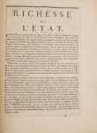 Amsterdam, Chez les Librairies associés, 1763. In-4, veau marbré, dos orné, pièce de titre rouge, tranches rouges (Reliure de l'époque). Goldsmiths, n°9836. - INED, n°3204. - François Quesnay, INED, 2005, p. 1387. Édition originale, d'une grande rareté, de ce texte majeur de l'école physiocratique. The Philosophie (1763) wasgenerallyaccepted as the first of the four text-books of physiocratorthodoxy (Schumpeter, p. 225). Un tableau économique gravé sur cuivre, répété pp. 118-119, et une jolie vignette sur bois en tête de la p. 1 représentant l'empereur de Chine en train de labourer. L'ouvrage, écrit par Mirabeau avec l'étroite collaboration de Quesnay (ce dernier a rédigé en entier le septième chapitre : Rapports des dépenses entre elles), constitue l'exposé le plus complet du système physiocratique : la nouvelle science n'avait pas encore été exposée avec cette ampleur. Il ne s'agissait plus d'un ouvrage de circonstance, d'un plan de réforme immédiate proposé pour remédier à une crise : c'était l'exposition pure et simple, magistrale et complète, d'une doctrine pleine de ressources sans doute, mais d'une vérité supérieure, dont les principes devaient s'appliquer à tous les pays et à toutes les époques. [...] C'était bien le ""Pentateuque"" de la future « secte » (Weulersse, t. I, p. 85). On dit que c'est dans cet ouvrage qu'apparaît pour la première fois le terme système mercantile (imprimé en manchette, p. 329). Il manque une autre épreuve du tableau gravé. On trouve reliés à la suite, les textes suivants en édition originale : - [ROUSSEL DE LA TOUR]. Richesse de l'État. S.l.n.d. [1763]. In-4, 8 pages. L'auteur, membre de la Chambre des comptes, propose la création d'un impôt unique, précurseur de l'impôt sur le revenu. La popularité de cet opuscule fut extraordinaire [...]. La perspective de l'impôt unique fascinait alors tellement les esprits qu'une surprenante éclosion de brochures s'attacha à commenter et discuter les Richesses de l'État [sic] (Stourm, pp. 105-107). - [MOREAU]. Doutes modestes sur la Richesse de l'État. S.l.n.d. [1763] [à la fin] : Paris, Bonaventure Ruinart. In-4, 8 pages.INED, n°3275. - [DUPONT DE NEMOURS]. Réflexions sur l'écrit intitulé : Richesse de l'État. S.l.n.d. [1763]. In-4, 8 pages. Schelle, n°1 (collation erronée). Très rare, il s'agit du premier mémoire publié de Dupont de Nemours. - La Balance égale ou la juste imposition des droits du Roi. S.l.n.d. [1763]. In-4, 48 pages. L'auteur avoue s'être servi des idées de Vauban, de l'abbé de Saint-Pierre, de Mirabeau, etc., et assure qu'il vaut mieux taxer les biens que les personnes, c'est-à-dire après avoir rendu libre le commerce et l'avoir affranchi de tout impôt (cf. INED, n°4554). Bel exemplaire, enrichi à l'époque de 4 rares éditions originales concernant l'impôt unique. Il porte sur une garde cette mention datée 1779 : [...] par M. de La Borde comte de Beliard (?). Petits frottements sur les coupes, avec infime manque de peau.