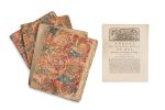 l'Imprimerie royale, 1769. - [MORELLET]. Examen de la Réponse de M. N** au Mémoire… Septembre 1769. Se trouve à Paris, Desaint, 1769.Ensemble 3 volumes in-4, brochés, non rognés, couvertures de papier tourniquet (Reliures de l'époque). INED, n°3306. Deuxième édition, augmentée, parue la même année que l'originale, ornée d'un tableau dépliant : État général des dépenses annuelles de la Compagnie des Indes (p. 131). Mémoire technique, imprégné de la théorie physiocratique, dans lequel l'abbé Morellet (1727-1819) condamne le privilège exclusif au profit de la pleine liberté de commerce. [L'auteur] expose ici, à l'aide de calculs, la véritable situation des affaires de la Compagnie, d'après des états authentiques émanant, soit de la Compagnie, soit de députés, de directeurs, ou autres personnalités en général favorables au privilège (INED). La Réponse de Necker, qui critique et réfute les propos de Morellet, ainsi que l'Examen..., sont en édition originale (cf. INED, n°3370 et n°3300). Exemplaires brochés, à l'état de parution, sous couverture uniforme. Brochages et couvertures un peu usagés. On y a joint : - Arrest du Conseil d'État du Roi, Concernant le Commerce de l'Inde. Du 13 août 1769. Paris, De l'Imprimerie royale, 1769. In-4, 4 pages, en feuille. Édition originale de cet important édit royal qui mit un terme aux activités de la Compagnie des Indes : Sa Majesté a reconnu que la Compagnie n'a fait jusqu'à présent aucunes dispositions pour se mettre en état d'approvisionner les Isles de France & de Bourbon, & pour remplir l'obligation que lui impose son privilège de faire sans discontinuation son commerce des Indes. [...] ce défautest la suite du manque de fonds dont ils aient pu disposer pour le commerce. [...] L'exercice du privilège exclusif de la Compagnie des Indes [...] sera & demeurera suspendu jusqu'à ce qu'il en soit, par Sa Majesté, autrement ordonné. - Examen des décisions de M. l'Abbé Morelet[sic], sur les trois Questions importantes qui sont le sujet de son Mémoire. S.l.n.d. Brochure in-4 de 40 pages, en feuilles cousues d'un fil, non rognées. Écrit anonyme qui réfute avec force les idées de l'abbé Morellet. Petites mouillures sur la première page. Ensemble d'un grand intérêt, touchant le débat économique et idéologique qui conduisit à la chute de la Compagnie française des Indes orientales.