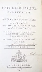 [PELISSERY (Roch Antoine de)]. Le Caffé politique d'Amsterdam, ou Entretiens familiers d'un François, d'un Anglois, d'un Hollandois, et d'un Cosmopolite, sur les divers intérêts économiques & politiques de la France, de l'Espagne, & de...