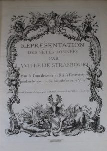 WEISS (Johann Martin). Représentation des fêtes données par la ville de Strasbourg pour la convalescence du Roi, à l'arrivée et pendant le séjour de Sa Majesté en cette ville. Paris, Laurent Aubert, 1745. Grand in-folio, maroquin rouge,...