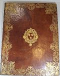 armoiries royales au centre, large dentelle spéciale avec armoiries du destinataire dans les angles, dos orné (Padeloup). Magnifique livre de fêtes, entièrement gravé sur cuivre, illustré d'un titre gravé par Marvye, un portrait équestre de Louis XV gravé par Wille d'après Parrocel, 11 planches à double page gravées par Le Bas d'après Weiss représentant l'arrivée du Roi, le cortège, l'entrée à Strasbourg, les décors et les festivités, etc., et 20 pages de texte avec encadrements et fleurons variés. Cette publication a été ordonnée par François-Joseph de Klinglin, prêteur de la ville de Strasbourg, afin d'immortaliser l'entrée triomphale de Louis XV dans la cité alsacienne le 5 octobre 1744. Exemplaire de présent dans la luxueuse reliure aux armes conçue par Padeloup, signée de son étiquette. Les armoiries du destinataire, au sautoir cantonné de quatre merlettes, chargé sur le tout d'un lion lampassé, pourraient être celles de François-Xavier Cardin Le Bret de Flacourt (1719-1765), comte de Selles, avocat-général au Grand Conseil depuis 1741 et intendant de Bretagne dès 1753. Défauts.