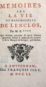 BRET. A. Mémoires sur la vie de Mademoiselle de Lenclos. Amsterdam. François Joly. 1751. 1 volume in-12, …