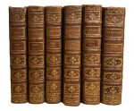 Reliures très usagées. Tome IV, petits trous de vers atteignant quelques lettres à deux cahiers. Des rousseurs, mouillures angulaires tomes II, III et V (prononcées tome V). Décharges pâles.