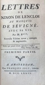 Edition de la correspondance apocryphe romancée de la célèbre salonnière Ninon de Lenclos, illustrée d'un portrait-frontispice et précédée d'une vie de Ninon.