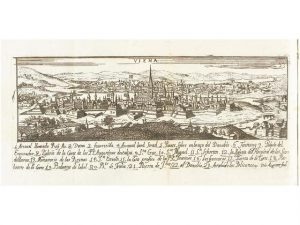 Escrita en lengua toscana por D. Simpliciano Bizozeri. Traducido en espanol por un Curioso. Barcelona: Martin Gelabert, 1688. 8° mayor. 280 p., 4 p de índices [faltan las primeras 5 h.]. 37 laminas de vistas de ciudades. ESTE EJEMPLAR TIENE LA LAMINA DE VIENA, QUE SE ENCUENTRA RARAMENTE. Algunas de las vistas son laminas plegadas. Enc. pergamino de época. Sello estampillado de antiguo poseedor. Palau 30049 'Obra mas estimada en elextranjero que en Espana. En la mayorfa de ejemplares sue/e fatarla vista de Viena’.