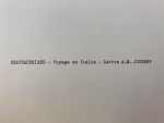 Voyage en Italie. Lettre à A. Joubert. Société des francs bibliophiles 1977. Tirage limité à 170 ex. sur Arches, seul grand papier. Edition illustrée par Gérard DIAZ. Reliure in-8 à l'italienne pleine toile noire fermant avec des lacets gris, boîte pleine toile noire, pièce de titre en long sur papier blanc, petite tache sur le dos (reliure et emboîtage signés par l'atelier Duval).