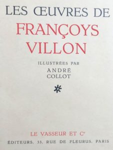 OEuvres. Le Vasseur éditeur Paris 1942. Première édition illustrée par André COLLOT. L'un des 5 ex. de tête sur Japon Impérial. Bien complet de 6 dessins originaux de Collot et de deux séries des suites des 20 illustrations (l'une en noir et blanc et l'autre en bistre). En feuilles in-4 sous chemise et étui.