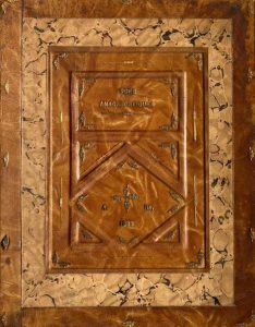 Odes anacréontiques. Société des médecins bibliophiles 1924. L'un des ex. sur Arches, sans colophon ni justificatif de tirage. Reliure in-8 plein veau, plat à motifs géométriques en cuir repoussé au centre, titre, date et motifs en dorure, dos lisse et aveugle, couvertures conservées, quelques rousseurs.