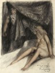 Salammbô. La tradition Malakoff 1947. Première édition illustrée par Hertenberger, tirage limité à 300 ex. sur vélin d'Arches, seul grand papier, celui-ci l'un des 172 complet d'un état supplémentaire des gravures. Exemplaire enrichi d'un dessin original au crayon à papier sur papier calque représentant Salammbô, nue, assise, avec un envoi autographe signé de l'artiste ; et d'un pastel original noir, blanc et ocre, représentant la visite de Mathô à la fille d'Hamilcar., envoi autographe signé en coin inférieur droit. En feuilles in-4 sous chemise et étui. Joint dans une chemise séparée deux suites des illustrations sur Lana (deux planches manquent à l'une des suites), certainement des essais de gravure, 4 dessins originaux, l'un représentant une scène d'un peintre dans un jardin, des croquis d'une femme nue à la longue chevelure, un homme sur un corps de femme et une femme se déshabillant, trois gravures signées et un projet d'ex libris gravé. Important ensemble d’artiste
