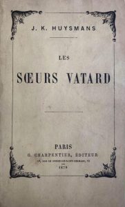 Les sœurs Vatard. Charpentier éditeur Paris 1879. Imprimé à Tours, E. Mazereau imprimeur. E.O. Quelques rousseurs surtout en premiers feuillets. Reliure demi chagrin marron à la bradel, dos lisse éclairci, fleuron or, couvertures conservées, reliure signée.