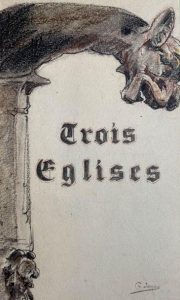 Trois églises et trois primitifs. Plon Paris 1908. E.O. en partie sur papier d'édition. Ex. enrichi de deux dessins originaux signé et monté sur onglet. Reliure in-12 à coins demi maroquin, dos insolé à 4 nerfs orné de motifs floraux or, tête dorée, couvertures conservées, (reliure signée Landre).