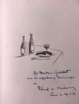 Les copains. Editions du Baou des noirs Vence 1949. Première édition illustrée par Klein. Tirage limité à 120 ex., celui-ci n°67. Envoi autographe signé de l'illustrateur, avec un petit dessin représentant deux bouteilles, une assiette et un verre sur une table, daté du 19 mars 1950. En feuilles in-4 sous chemise et étui, quelques piqûres éparses.