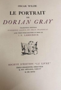 Le portrait de Dorian Gray. Société d'éditions Le livre Paris 1928. Première édition illustrée par Laboureur (23 gravures au burin). L'un des 30 ex. H.C. sur Hollande, 2ème papier (exemplaire sans la suite des illustrations comme la plupart des ex. H.C.). Très belle et sobre reliure in-4 plein maroquin aubergine, dos lisse, contre plats doublés de plein maroquin aubergine et carré central en vélin crème, tête dorée, couvertures conservées, chemise et étui de maroquin aubergine (reliure signée Charles MERIENNE).