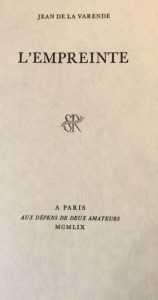 LA VARENDE Jean de : L'empreinte. Aux dépens de deux amateurs (Herbert et Rey). Paris 1959. E.O. L'un des 25 ex sur …