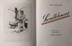 Parallèlement. S.n.s.d. imprimé par Haasen. Première édition illustrée par Lobel-Riche. Tirage limité à 230 ex. sur Arches, seul grand papier, celui-ci l'un des 170 avec l'état terminé in-texte. En feuilles sous chemise tachée, étui, dis aveugle.