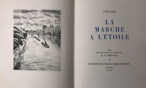 La marche à l'étoile. Société des francs bibliophiles Paris 1946. Première édition illustrée par Soulas, l'un des 160 ex. vélin pur chiffon, seul grand papier, celui-ci l'un des ex. nominatif, imprimé pour Paul Durupt. En feuilles in-8, sous chemise et étui, titre en long, état de neuf.