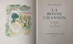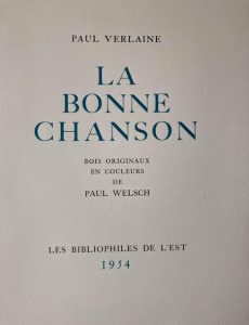 La bonne chanson. Bibliophiles de l' 1954. Première édition illustrée par Welsch, ce qui sera par ailleurs sa dernière oeuvre. Tirage limité à 130 ex. sur vélin de Rives, seul grand papier, celui-ci n°96 nominatif. En feuilles in-4 sous chemise et étui.