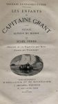 Illustrations de Riou. Paris, Bibliothèque d'Éducation et de Récréation, J. Hetzel Éditeur, sans date (1868). Grand in-8° triple, cartonnage personnalisé de l'éditeur en pleine bleue portant les mentions «Les Enfants/du capitaine Grant/Voyage autour du Monde/par/Jules Verne/Les Voyages Extraordinaires/Edition J. Hetzel» en couverture. Charles Magnier relieur, doré en pied du dos. Tranches dorées. Gardes veloutées beige-mauve. Imprimerie Jules Bonaventure. Superbe plaque et ors du dos très bien marqués. Légères restaurations aux mors.