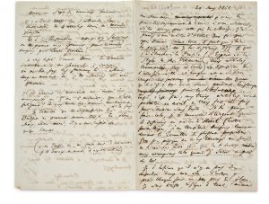 Signed autograph letter addressed to his mother, Mrs. Caroline AUPICK [Paris], March 29, 1862. 6 pages in-8 in brown ink on paper filled with tight handwriting. Beautiful and long letter to his mother. Baudelaire asks his mother to advance him money before his articles on L'Esprit et le style de M. Villemain (still in draft form), to pay his maître d'hôtel. "I assure you that there is no disorder in my life. Order takes up a little more space every day. I am sad, resigned to everything, even to suffer for the rest of my life, resigned to the judicial council and determined to simply do whatever I have to do to have it destroyed. - I'm going to have four vol. to publish this year. I'll bet all four will go unnoticed. I'm not getting justice. ...Prose Poems will also go to press. 1,000 francs! But, alas, it's not over yet. The Literary Dandies will be published in the press. Perhaps the Philosopher Painters. We have to stay in Paris to finish all that. And then to conclude. I think Hetzel will buy me a reprint, in volume, of the Prose Poems. The money for all this is distributed in advance. I still have two other resources, but they're not as secure as the work. How it takes years of fatigue and punishment to learn the simplest truths, for example that work, that unpleasant thing, is the only way not to suffer, or to suffer less from life! [...]». Baudelaire then talks about FLAUBERT who finishes Salammbô: "Recently I read a few chapters of Flaubert's next novel; it's admirable; I felt a strengthening feeling of envy. HUGO is going to publish his Misérables, a novel in ten volumes. All the more reason why my poor volumes, Eureka, Poëmes en prose and Réflexions sur mes contemporains should not be seen. To be over forty, to pay my debts and make my fortune through literature, in a country that loves only vaudeville and dance! What an atrocious destiny!". Baudelaire is still in Paris to finish his "research on painters and engravers", but in Honfleur he hopes to "find and invent new forms for works of pure imagination [...]". Before his arrival in Honfleur, he will send "a new box of paintings and engravings (this is my only fun)". He adds that he has been waiting "for 17 weeks" for the proofs of his article for L'Illustration: "I am sorry to have given this important work to a picture newspaper. We don't read those newspapers. But at the time, I didn't know what to get myself into". And he fears that he will soon have "manuscripts in 5 or 6 places", which may be delayed by the discussion of the Budget... REFERENCES Correspondence (ed. Claude Pichois), Bibl. de la Pléiade, t. II, p. 236. PROVENANCE Anciennes collections Armand GODOY (1982, n° 159), then Daniel SICKLES (IV, 1039).