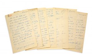 Set of eight autograph letters to his lawyer Thomas MIKKELSEN. Kobenhavns (Denmark), August-September 1949. 38 pages ½ in-folio in ink on paper. Correspondence addressed to his lawyer Thomas Mikkelsen, in order to prepare his defence for his trial. "[...] You probably don't have time to read the World! Here's some ritual blah blah blah blah blah blah blah blah blah blah blah blah blah blah... outside in the Assembly etc.... Amnesty etc... Oh how I am afraid when good wills are shaken! Then, the worst disasters are to be feared! ..." "[...] I'd rather commit suicide here or starve to death than stay dead for 10 minutes in Fresnes ! I'm not guilty of anything at all. Guilty are those who issued an arrest warrant against me. That's all. I've suffered enough to pay for the false justice of French farce. I don't have enough months left to live to still serve as a clown to the lawyers and judges of Paris! No. Termination of the case or nothing at all! No compromises, no tricks, no tricks, etc.".
