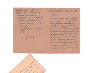 Autograph signed ticket addressed to Camille MAUCLAIR S.l.n.d. [Wednesday]. 1 page in-16 in ink on paper. "Come, Mauclair, let's talk about this, tomorrow or Thursday around half past eight, before I leave [...]". Attached is a letter from the writer Camille MAUCLAIR to whom Mallarmé's note is addressed and who offers it to the addressee of his letter (4 pages in-12, envelope kept).