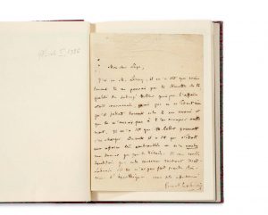 - Autograph letter signed to his father, about an a.aire of which he was informed by the notary Alphonse Leroux, in which Nerval's father is subrogated guardian. S.l.n.d. [Paris, 1841?], 1 p. sur 1 f. in-12. - Autograph letter signed "Votre G" addressed to George Bell, about a loan "that has some chance of success". S.l.n.d., 2 p. sur 2 ff. in-12. - Autograph letter signed to Monsieur Rouÿ, in which Nerval asks for an advance of 10 fr. on a forthcoming serial. S.l.n.d., 1 p. out of 1 f. in-12. - Autograph note signed to Joseph Méry about one of his plays and about which their friend Théophile Gautier is to speak, Paris, September 23, 1853. 1 p. out of 1 f. in-12. - Autograph letter signed to Edmond Seveste in which Nerval asks for tickets for the Théâtre Français, recommending themselves from their meeting at Alboise. S.l.n.d., 1 p. sur 1 f. in-12. - Autograph ticket signed "to [his] dear Denys" from whom Nerval asks for 3 tickets for Les Porcherons (comic opera by Thomas Sauvage with music by Albert Grisar). S.l., circa 1850, 1 page out of 1 f. in- 12. - Autograph ticket signed to Eugène de Stadler, to invite him to dinner. S.l.n.d., 1 page sur 1 f. in-12. - Autograph letter to Armand Barthet, about one of his pieces, which Nerval warmly recommended to Taxile Delord (editor at Le Siècle) and to Louis Huard (director of the Charivari). S.l.n.d., 2 pages on 1 double leaf. Barthet has annotated this letter at length. - Autograph note signed to "[son] cher Francis", about Nerval's meeting with Monsieur de Martres, s.l.n.d., 1 p. sur 1 double f. in-12. - 3 autograph notes signed to George Bell while he is being treated at Doctor Blanche. He makes an appointment with his friend: "I'm starting to go out. We'll make an appointment to see each other". 2 tickets s.l.n.d. and the third: Passy, July 29, 1854, 3 p. sur 3 ff. in-12. - Autograph ticket signed to Alphonse Royer, director of the Odéon theatre in which Nerval asks for tickets for La Conscience, a drama by Alexandre Dumas, s.l., January 1855, 1 p. sur 1 f. in-12. The edition of the Two Unpublished Letters from Gérard de Nerval to Ferdinand Sartorius (Thierry Bouchard) was edited in fine.