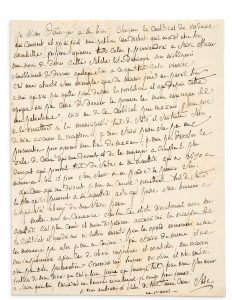 «[...] C'est une atrocité pour exemple que de n'avoir pour un pareil tour à moi qui n'est pas quitté Paris depuis la révolution et qui depuis cette époque n'ai pas cessé de donner la preuve la moins équivoque de mon patriotisme [...] Mettez vous en commerce, donner cet objet directement avec M. Gauffredi, c'est plus court et moins dispendieux, accuser moi la réception de le certificat et gardés moi vos lettres ensuite pour les grands evenements meme le menager pas alors je vous en conjure [...]».