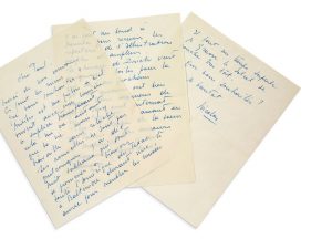 Signed autograph letter addressed to Paul CHADOURNE [Antibes, December 21, 1954]. 2 pages ½ in-4 in ballpoint pen on paper, envelope preserved. "Antibes is an open-air prison with a transparent suplice light. It suits me as much as life itself but I work there tirelessly. The news is not trivial. I have eighteen paintings that will travel all over America from Texas to Baltimore for a year to furnish museums. I've made a trip to Menerbes to receive the reporters of the Illustration surprised by the scale of the project. The museum in Zürich wants fifty paintings by the end of next year. And your loves have passed their exams of I don't know what boarding school or day school, the lover in title takes care of the sister in Paris and the loves in Marseille. I'm still the dangerous man. What's the point? [...]». [Less than three months later, on March 16, 1955, the painter committed suicide in Antibes.] Rare document.
