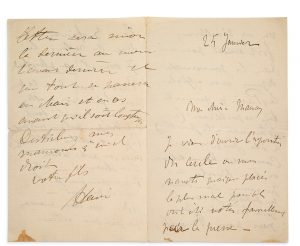 Signed autograph letter addressed to his mother, Countess Adèle-Zoé de Toulouse-Lautrec. Paris], January 25 [1892]. 4 pages in-8 in brown ink on paper on a double page (horizontal fold, small tear and small ink stain). Touching letter in which the artist evokes an exhibition of his Turnips which were favourably noted in the press. In January 1892, Henri de Toulouse-Lautrec exhibited two paintings, including a version of Celle qui se peigne, at the Cercle artistique et littéraire in rue Volney. His works, much in demand by art dealers and exhibition organisers, especially since the success of the poster on the Goulue, were also appreciated by art critics. It is to Arsène Alexandre's article, published in Le Paris on 8 January 1892, that this letter refers. "My dear mother, I have just opened the Cercle exhibition where my turnips, although placed as badly as possible, have been favourably noted by the press. I've been very kindly received in the newspapers since my poster was put up. The 'Paris' [...] has gone so far as to devote two columns to me where my person is revealed without omitting any detail [...] Distribute my love to whomever is entitled, your son, Henri". (Letter published in: Correspondance, edition of Herbert Schimmel, 1992, n° 212, p. 187).