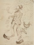Cette lettre se termine par un bel autoportrait de Verlaine en paysan, lisant une lettre, dessin original à l'encre légendé (légère déchirure et pliures). Au printemps 1880, il avait acheté une ferme à Juniville dans les Ardennes, où il restera jusqu'au printemps 1882. Ce dessin est reproduit dans le catalogue Barthou, l'Album Verlaine de la Pléiade (p. 171) et dans Bibliographie et iconographie de Paul Verlaine par Van Bever et Monda (1991, pl. LVIII).