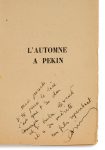 Autumn in Beijing. Paris, Éditions du Scorpion, 1947 In-12, paperback. Original edition, no large paper. Copy of Boris Vian's mother with this autograph: "Mother Pouche if you can read it it is because you have courage and if Bubu wants it he has merit, your repentant son. Boris Vian".