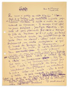 Vaudeville in Saint-Germain-des-Prés, autograph manuscript 17 pages in-4 in purple ink. Boris Vian wanted to stage this neighbourhood, make films and create ballets, but nothing came of it and this vaudeville remains totally unknown. Vaudeville in Saint-Germain-des-Prés in which Juliette Gréco appears.