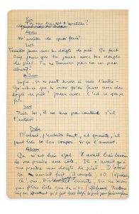 ─ L'on joint 3 pages grand in-4 de partitions au crayon bien complet des paroles de la main de Boris Vian relatives à «À chacun son serpent. Adam, Ève et le troisième sexe». (Le choeur des anges) Pièce de théâtre relative à Adam et Ève, le serpent et Dieu. «[...] Devant le rideau. Dieu arrive en scène, suivi des anges qui s'éclaircissent la voix (vocalises : ah, ah, ah, mi, mi, mi) Dieu a une grosse sacoche et ressemble à un dessin de Jean Effel [...]».