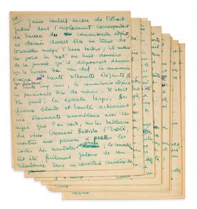 Chronicle of Pierremort. The panther will ask the commissioner, autograph manuscript 69 pages in-4 perforated in green ink. The love between a police commissioner and a female panther.