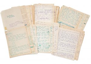 «Maman, gâteau variantes», 57 feuillets manuscrits à l'encre verte et 46 feuillets tapuscrits avec corrections de Vian.