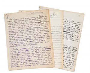 - 2 tapuscrits et manuscrits de notes sur le public, les auteurs honteux - hommage à la radio, 3 pages tapuscrites et 7 manuscrites.