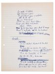 [Dentist's Blues] Dentist's gown. Words of Boris Vian. Music by Henri Salvador. 1958 Autograph manuscript of first draft primitively titled " Blouse du dentiste (Dentist's blues striped) ", 3 pages in-4 in ballpoint pen with erasures and corrections of the complete text; - Vian's autograph manuscript of the complete text, titled " Blues du dentiste ", 2 pages in-4; - 2 typescripts; - Printed score. A toothache suffered by Henri Salvador would be at the origin of the brilliant "Blues du dentiste". Famous version performed as a duet by Ray Charles and Henri Salvador.