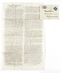 20 FÉVRIER 1871 — 20c Siège obl. étoile pleine PARIS (60) sur enveloppe Havas contenant une circulaire imprimée Assemblée Nationale, séance du 19 février 1871, pour Caen. — Au verso càd d'arrivée 23 FÉVR. 75. — Pièce intéressante,...