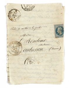 ambulant Paris à Besançon 15 OCT.70 et d'arrivée à Aubusson 17 OCT. 70. — Texte séparé de la lettre. — Rare et B.