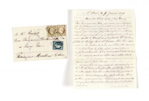 BOULE DE MOULINS — 20c Bordeaux type II et 40c non lauré en paire obl. GC 3533, càd SAINT-BRIEUC (21) 9 JANV. 1871, sur enveloppe avec Lm datée du 7 janvier 1871. — Sans arrivée. — Affranchissement complet et rare. — B/TB.