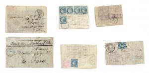 BOULES DE MOULINS — Ensemble de 14 lettres par Boules de Moulins sans cachet d'arrivée dont 8 affranchissements complets, 3 partiels avec un timbre perdu par immersion, et 3 avec affranchissements perdu par immersion. — B/TB.