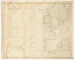 ° North Atlantic Ocean / Northeastern sheet. Washington, Hydrographic Office, 1926. 109,3 x 33,3 cm. Quelques annotations manuscrites de Lindbergh et Hall, dont la ligne imaginaire commencée sur la carte précédente. Hall a noté au verso: « LINDBERGH'S MAPS N.Y TO PARIS 1927 / PREPARED BY HIM/ Don HALL ».