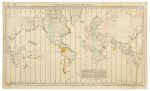 ° Time zone charts of the World. Washington, Hydrographic Office, 1927. 76 x 127 cm. Cachet « Donald A. Hall » et signature au verso. Cette carte, en couleurs, fut utilisée par Lindbergh pour déterminer les fuseaux horaires traversés.