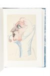 Ensemble de dessins surprenants représentant des visages et des personnages en buste ou en pied. Un seul se distingue des autres par son thème et sa facture : le Petit Prince sur sa planète (n° 49), à l'encre bleue, signé et daté 1940.