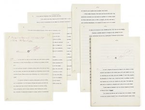- Dactylographie du chapitre « Le Socialisme » supprimé dans l'édition originale, en 2 versions : une version de 34 ff. avec corrections et une seconde de 27 ff. qui intègre les corrections manuscrites de la précédente. Ce texte n'a pas été retenu dans l'édition originale de l'ouvrage au Mercure de France à la demande de Michel Cournot, mais il a été introduit, chez le même éditeur, dans la version parue en 2007.